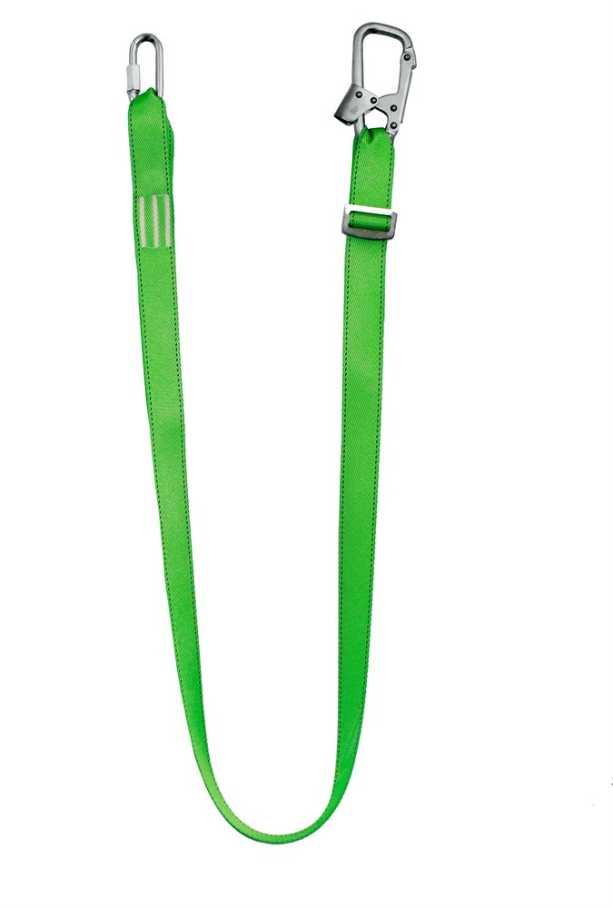 - страховочный регулируемый строп из полиэфирной ленты, с амортизатором, с одним малыми монтажным карабином и одним соединительным карабином.