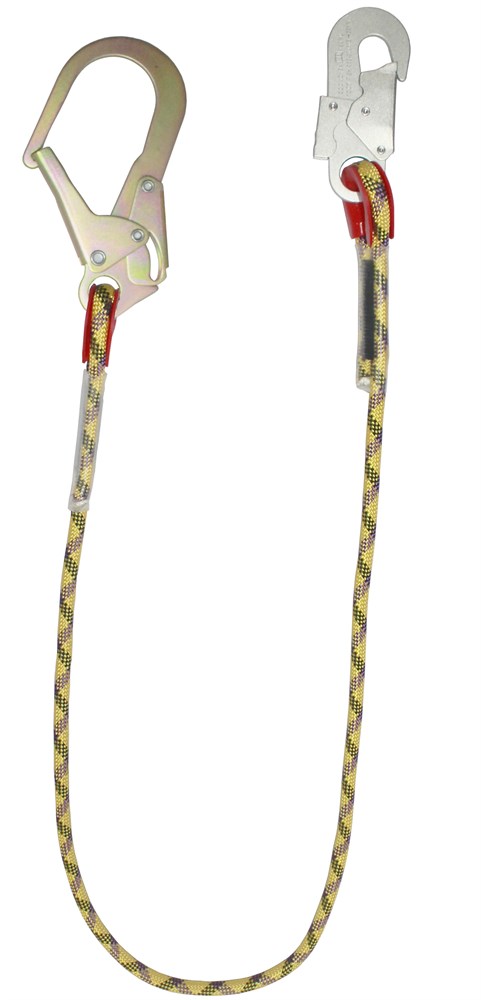 - удерживающий строп из каната в оплетке, с одним большим и одним малыми монтажными карабинами.