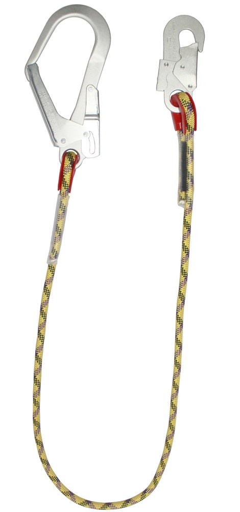 - удерживающий строп из каната в оплетке, с одним большим и одним малыми монтажными карабинами.